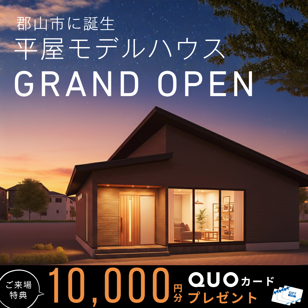 2025.08.31 イベント 平屋モデルGRAND OPEN! 日時 9/20(土)~ 場所 郡山市、須賀川市 ご予約はこちら モデルハウスの見どころ 間取りのご紹介 平屋[FLAT]・30坪・施工延床面積:99.0㎡・2LDK+シューズクローク+ヌック+コートヤード ご来場特典 Reservation イベント参加予約フォーム イベントへの参加をご希望の方は、下記フォームからご予約ください。 希望店舗必須 郡山中央店郡山針生店須賀川店いわき東店 お名前必須 メールアドレス必須 ご住所必須 電話番号 希望日時必須 9:00 〜10:00 〜11:00 〜12:00 〜13:00 〜14:00 〜15:00 〜16:00 〜17:00 〜 お問い合わせ内容 ご予約希望のお客様へ 担当よりお電話またはメールにて確認のご連絡をさせていただき、確認が取れ次第ご予約確定となります。 プライバシーポリシーに同意する このサイトはreCAPTCHAによって保護されており、Googleのプライバシーポリシーと利用規約が適用されます。