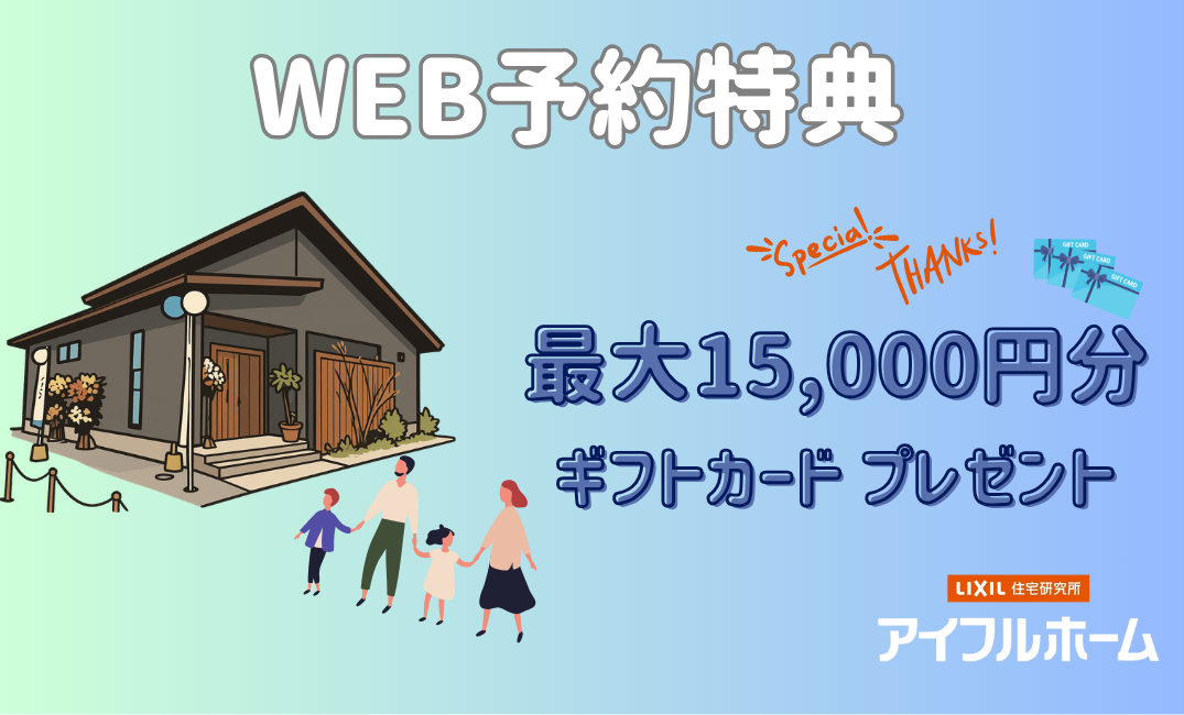 アイフルホームに初めてご来場いただいたお客様に最大15,000円分のギフトカードをプレゼント!