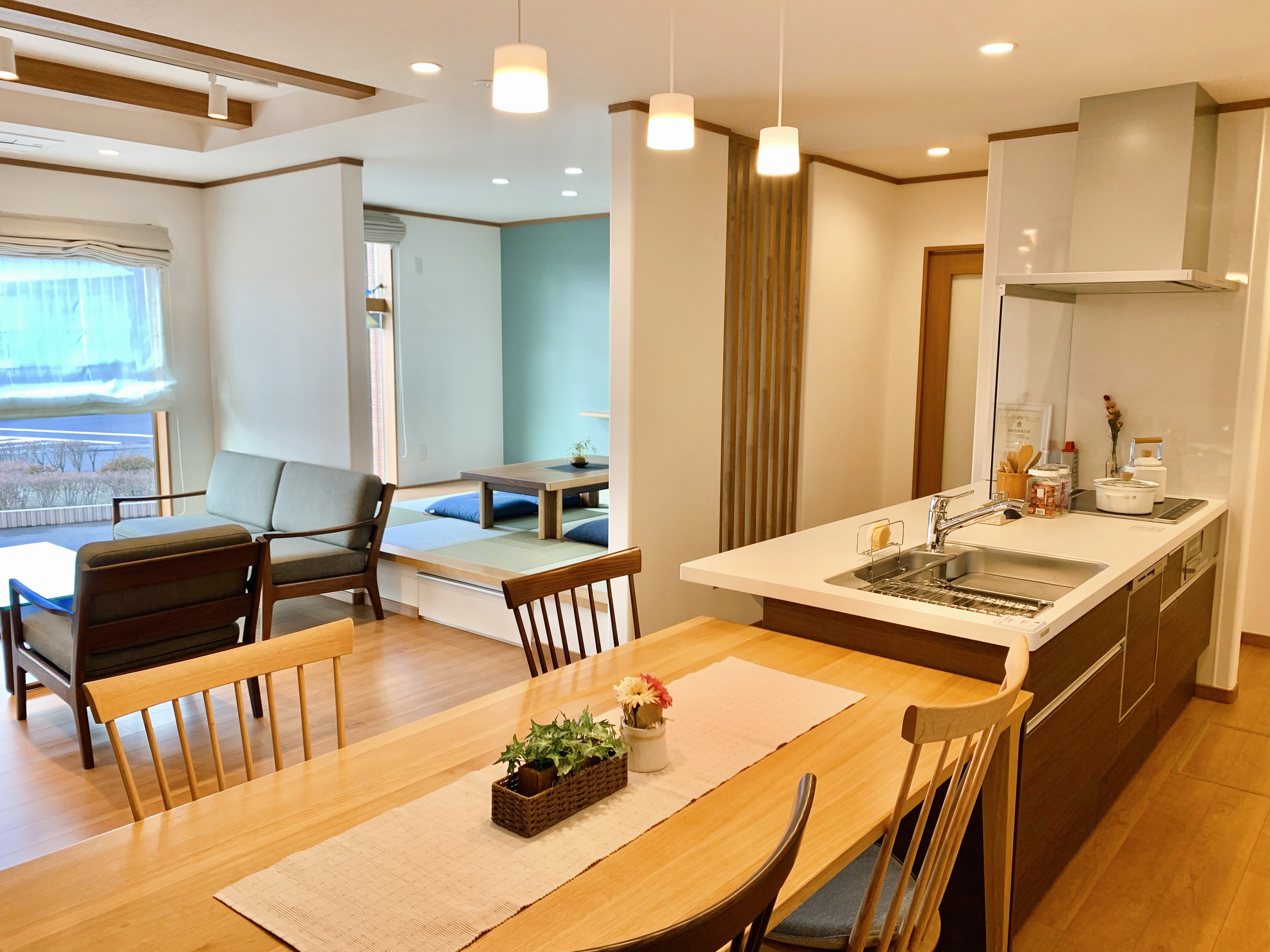 - キッチンからお部屋全体を見渡せる「見守り動線」