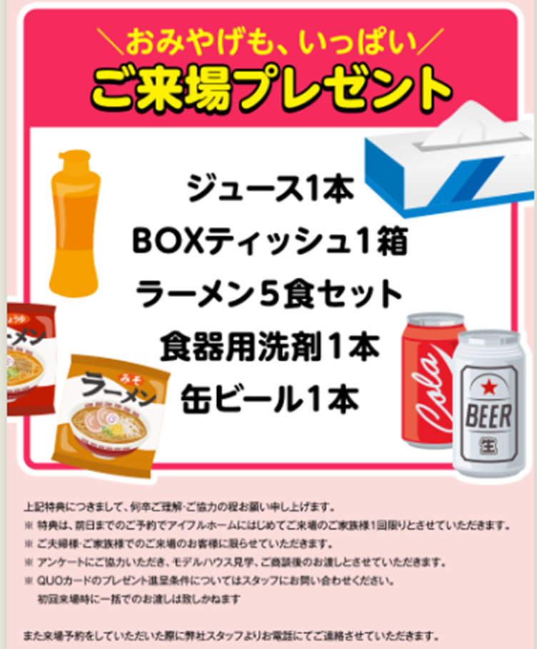 ※事前予約制となりますので、前日までに来場予約の上、ご来場くださいますようお願い申し上げます。ご予約をいただきました後、担当営業から電話・メールでの確認のご連絡をさせていただきますので、ご対応の程、お願い申し上げます。