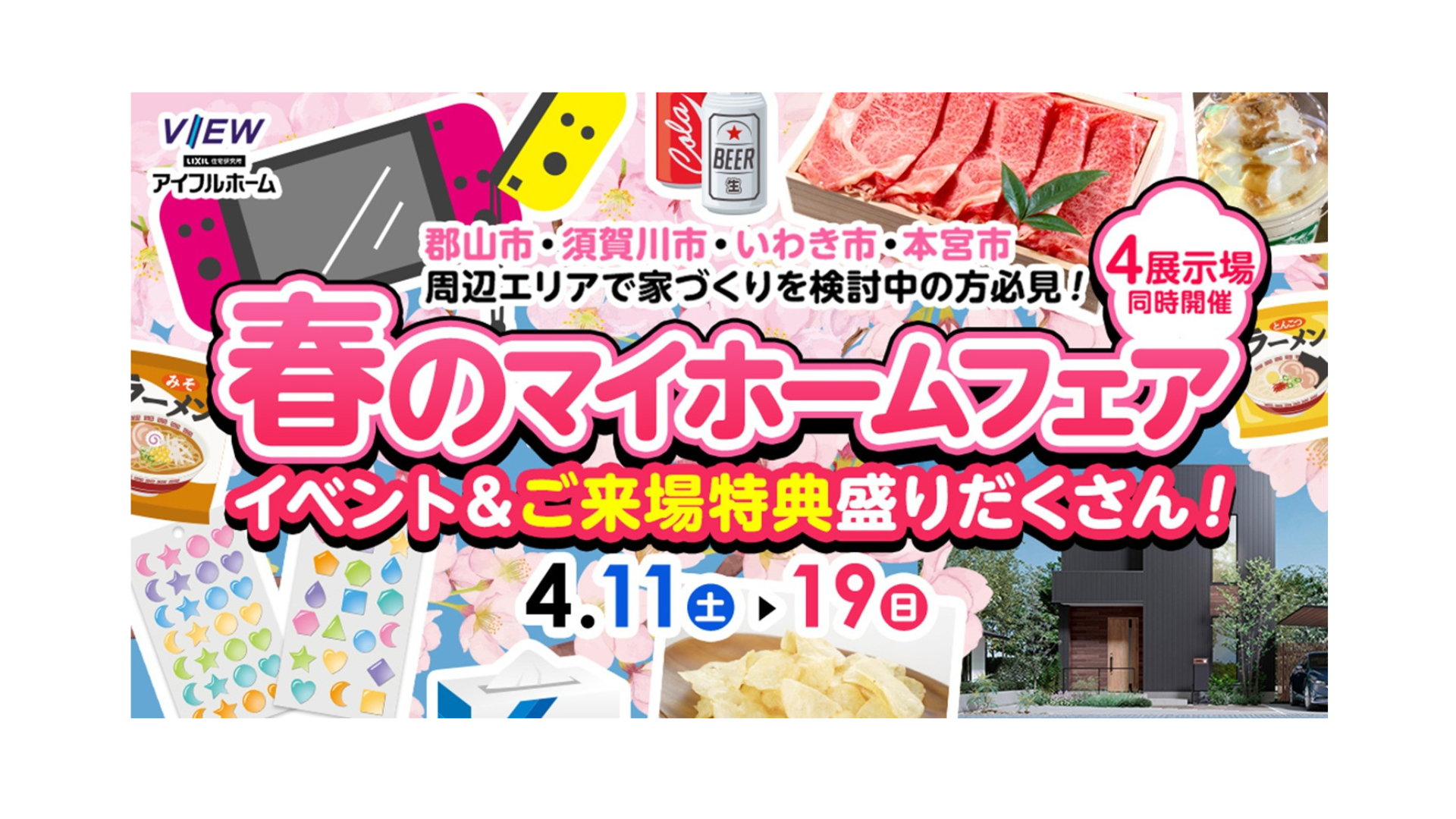 - 郡山針生店モデルハウス、郡山中央店モデルハウス、須賀川店モデルハウス、いわき東店モデルハウス