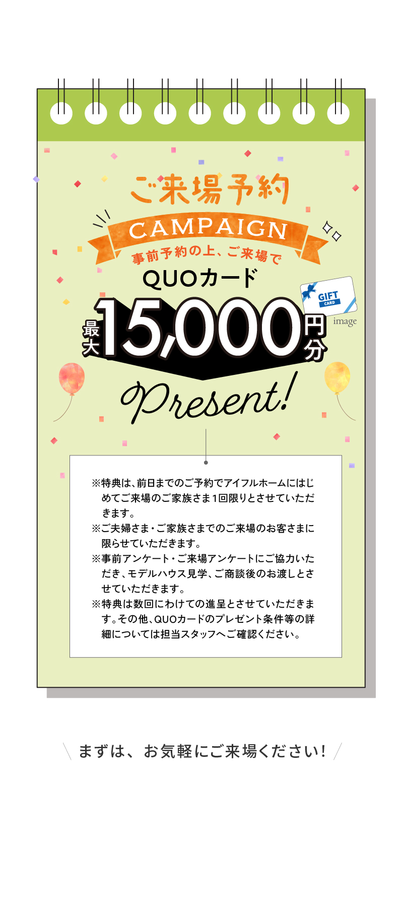 前日までの事前予約で最大15,000円クオカードプレゼント🎁
