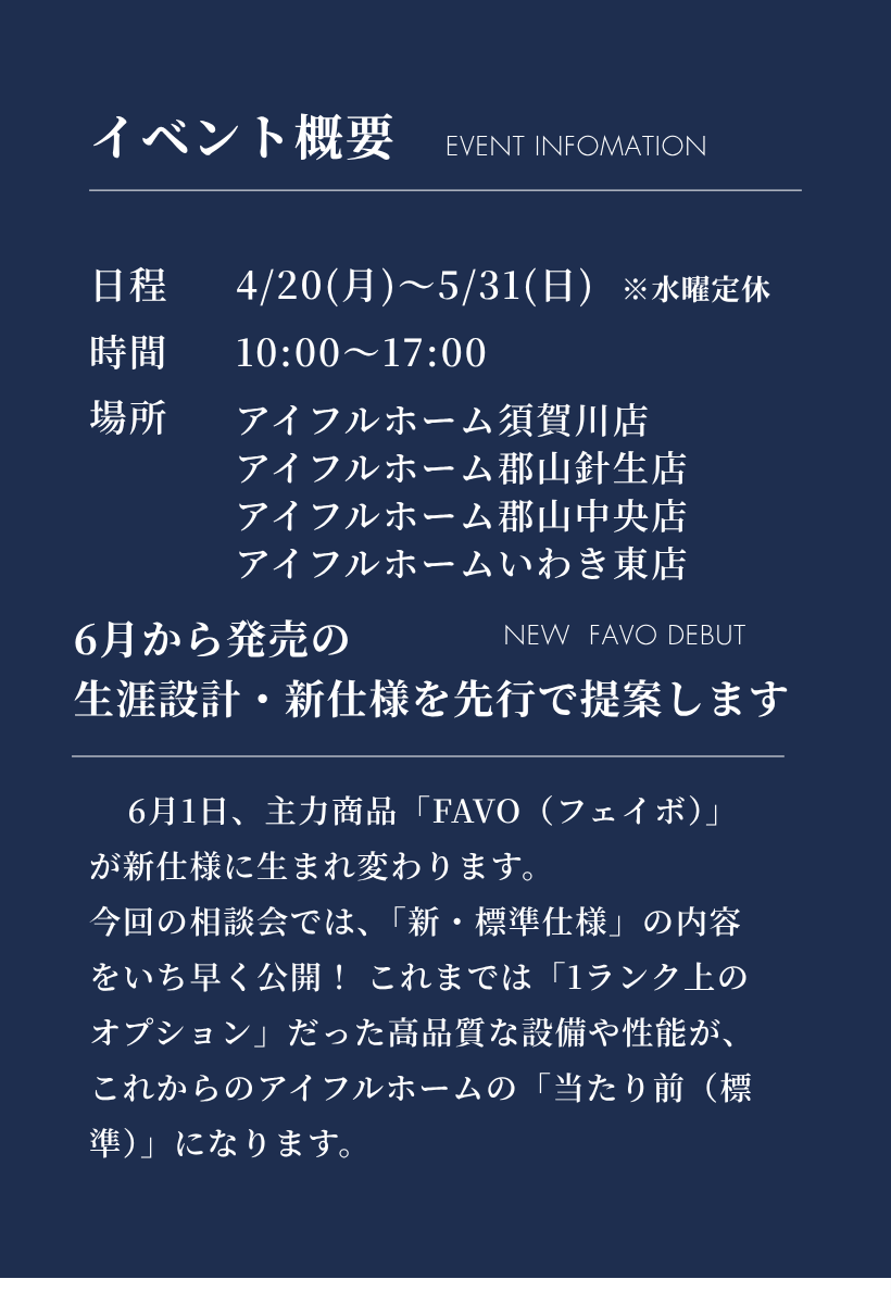 先行販売会【4/20~5/31】フルスペックに進化したFAVOでつくる 生涯設計プラン相談会