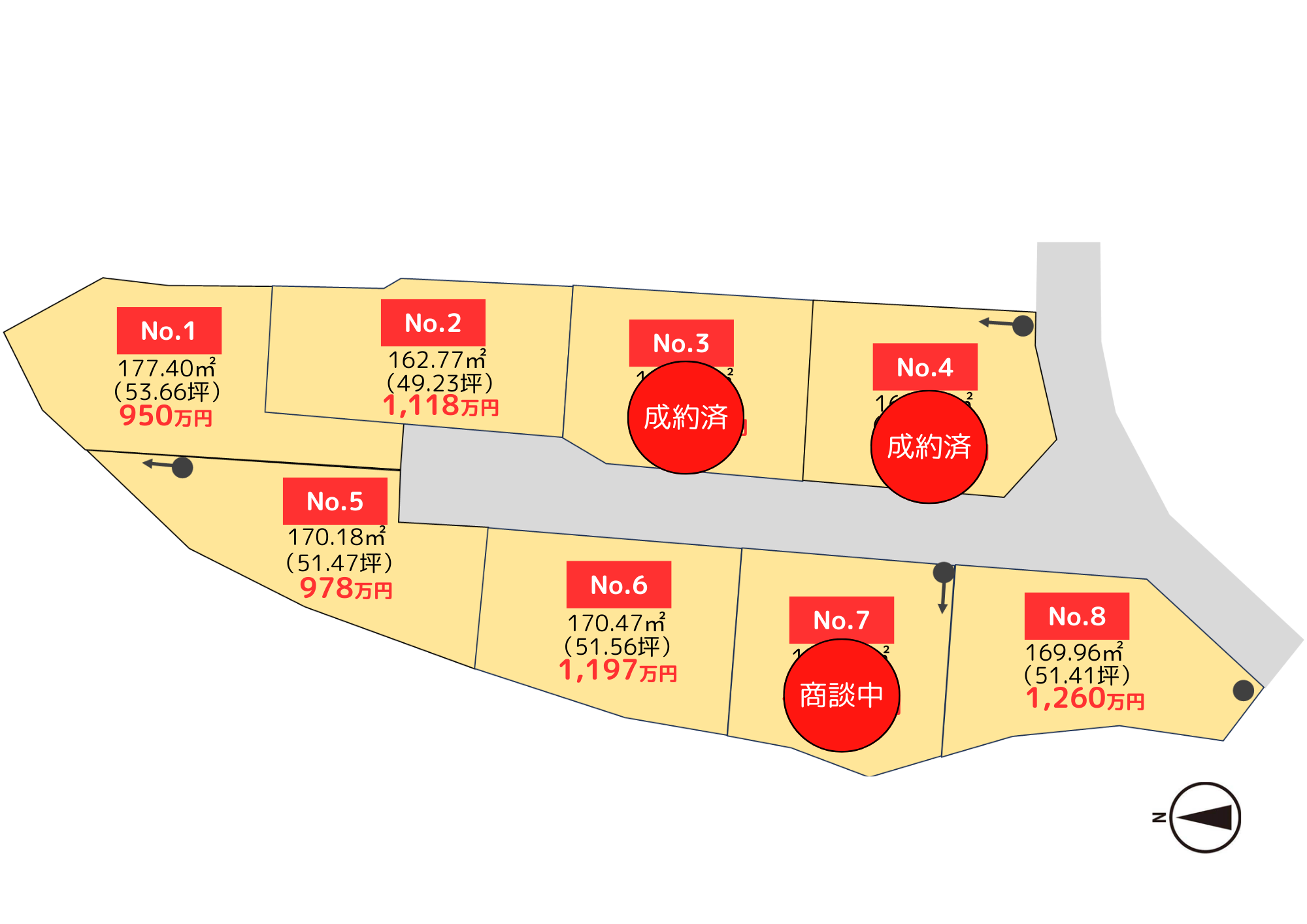 接道幅等 | ●南側市道約4m(現況約3m開発行為に伴う拡幅)●開発区域内道路4.5m(一部6mあり) |